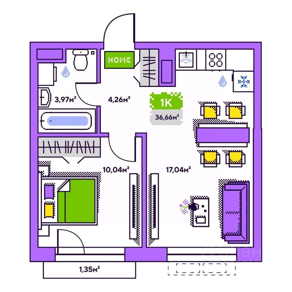 Общая площадь36,66 м²