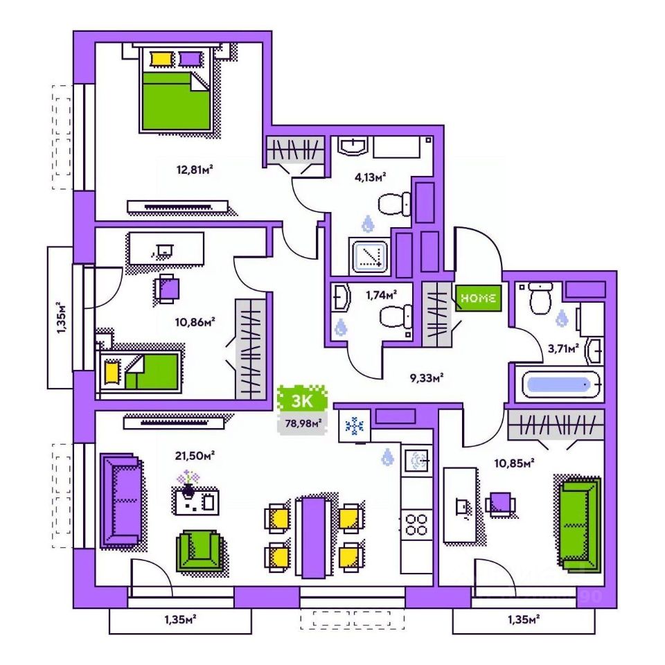 Общая площадь78,98 м²