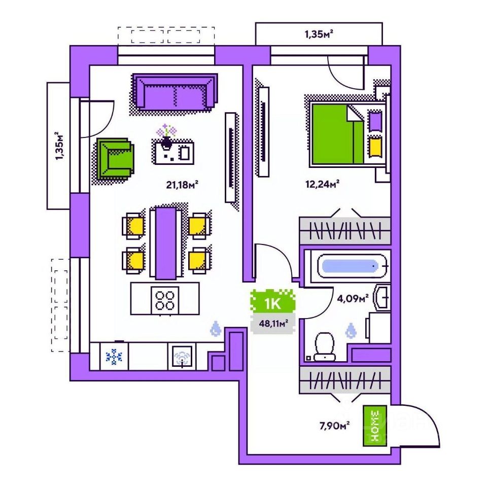 Общая площадь48,11 м²