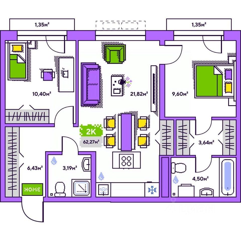 Общая площадь62,27 м²