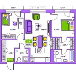 Продается 2-комн. квартира, 62,27 м²