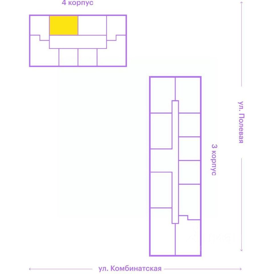 19-этажная архитектурная доминанта с эффектом паруса и камерная секция: французские балконы, сити-хаусы на 1-м этаже, 9 этажей в доме. Уступчатая структура формирует динамичный силуэт — новый акцент ул. Полевая. Металлические балконы создают градиент от тёмного к светлому, большие окна — панорамные виды на город.