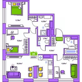 Продается 3-комн. квартира, 68,89 м²
