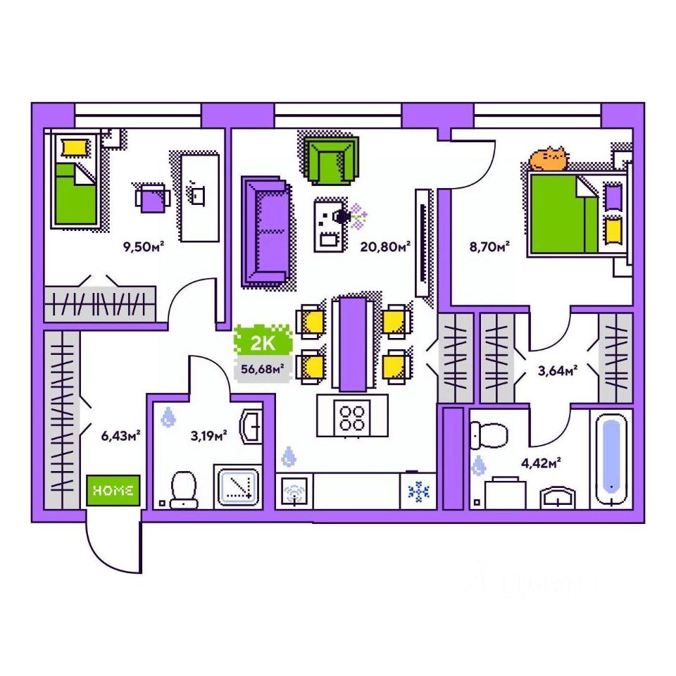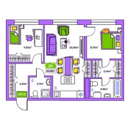 Общая площадь56,68 м²