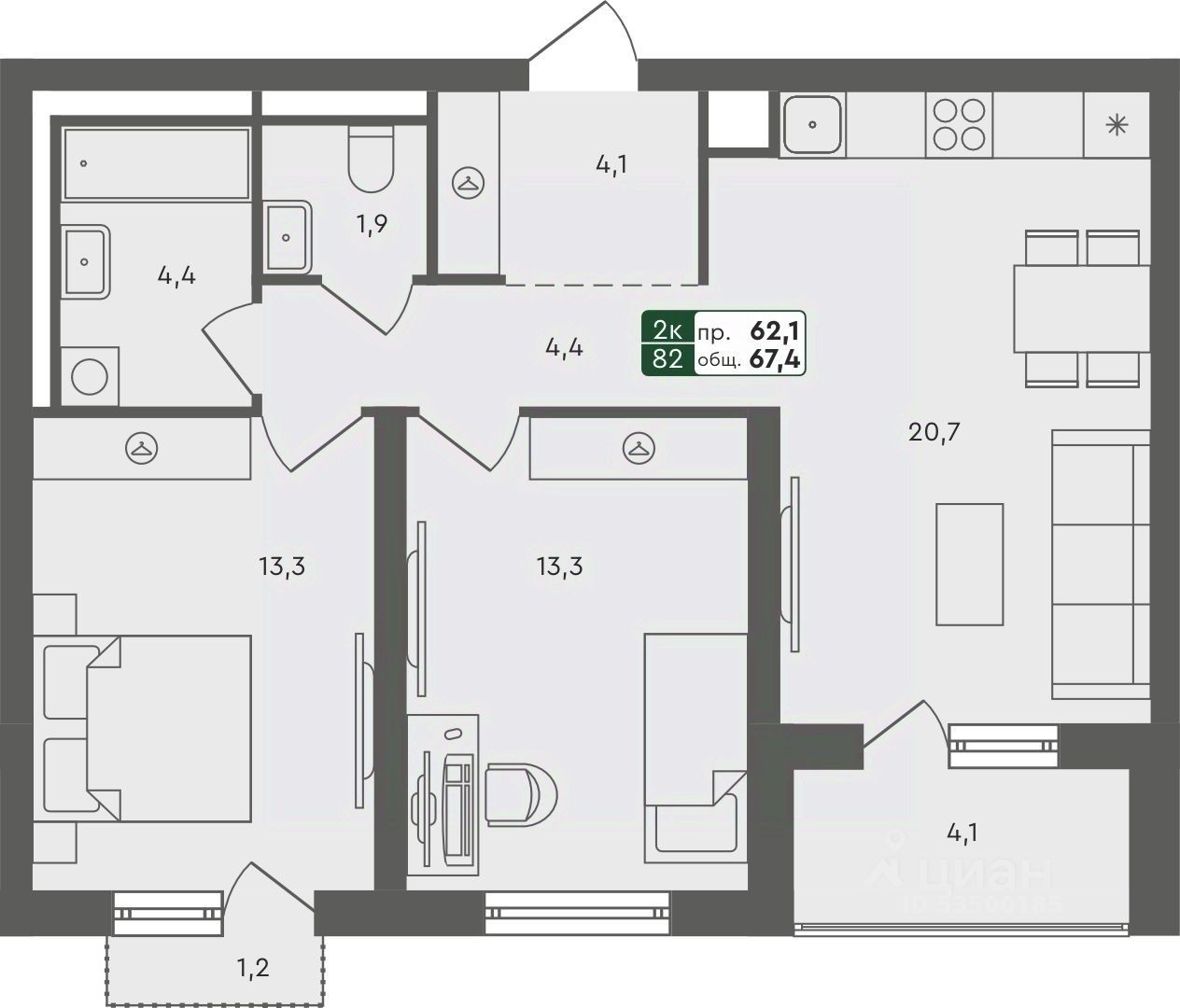 Продаётся 2-комнатная квартира в строящемся доме (ГП-3 (Бульварная, 2)), срок сдачи: IV-кв. 2025, общей площадью 67.4 кв.м., на 3 этаже. Проект в формате "Дома не выше сосен" отражает синтез великолепной архитектуры, престижной инфраструктуры и разумной стоимости. Жилье повышенного качества по доступной цене городского типа (квартиры), таунхаусы и индивидуальные дома с земельными участками характеризуются высокой транспортной доступностью исторического Тобольского тракта и формируют гармоничную и экологичную среду для комфортного проживания.