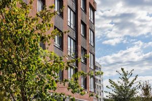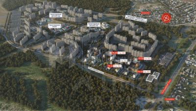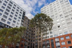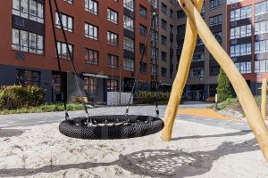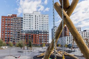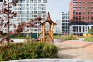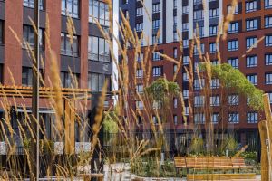 - Пешеходный бульвар внутри района с взрослыми деревьями и кустарниками.