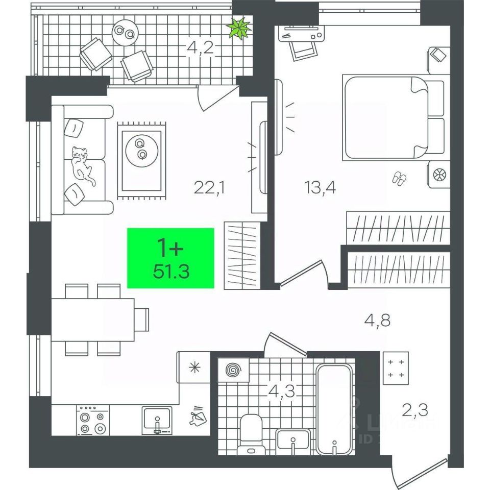 Продаётся 1-комнатная квартира в строящемся доме (1-Д3.2 (Глебова, 10)), срок сдачи: III-кв. 2026, общей площадью 51.38 кв.м., на 18 этаже. Компания 4D приступила к строительству нового жилого комплекса "Гранд квартал". Новый ЖК находится в зеленой зоне Калининского района, южнее микрорайона Тюменская слобода.