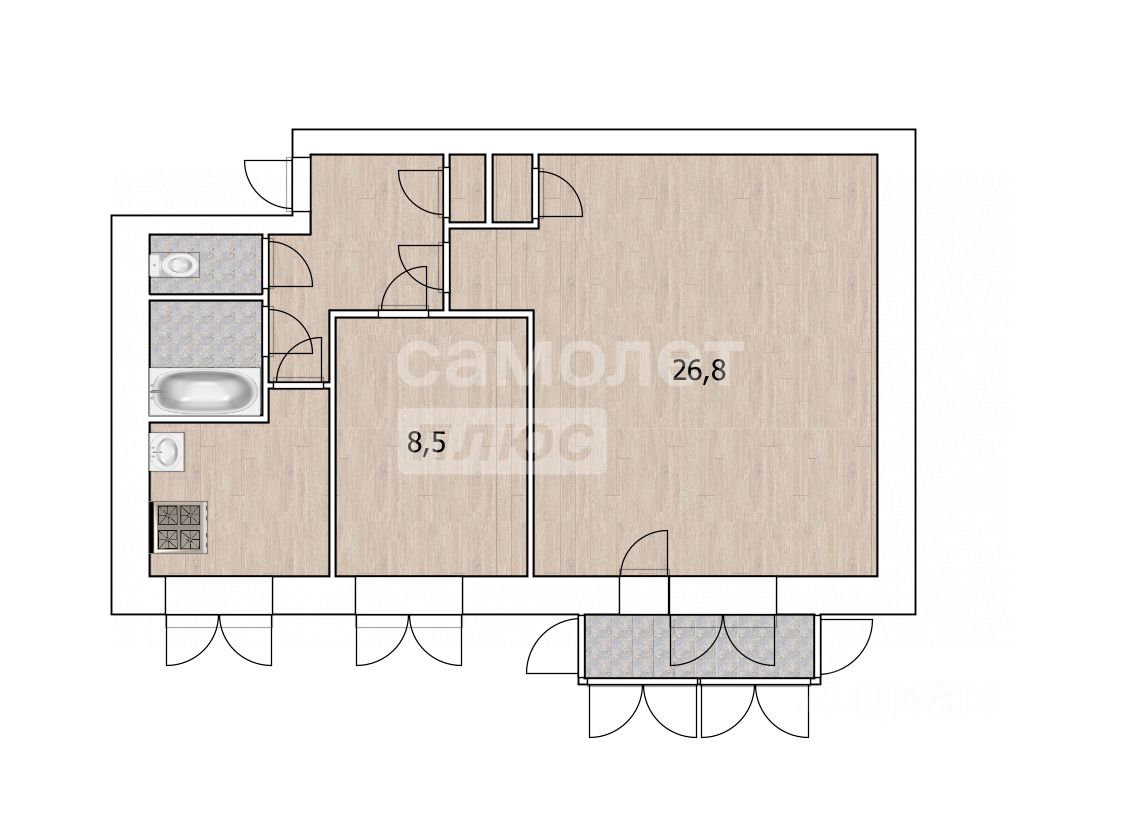 -- жилая площадь: 35.3 м²