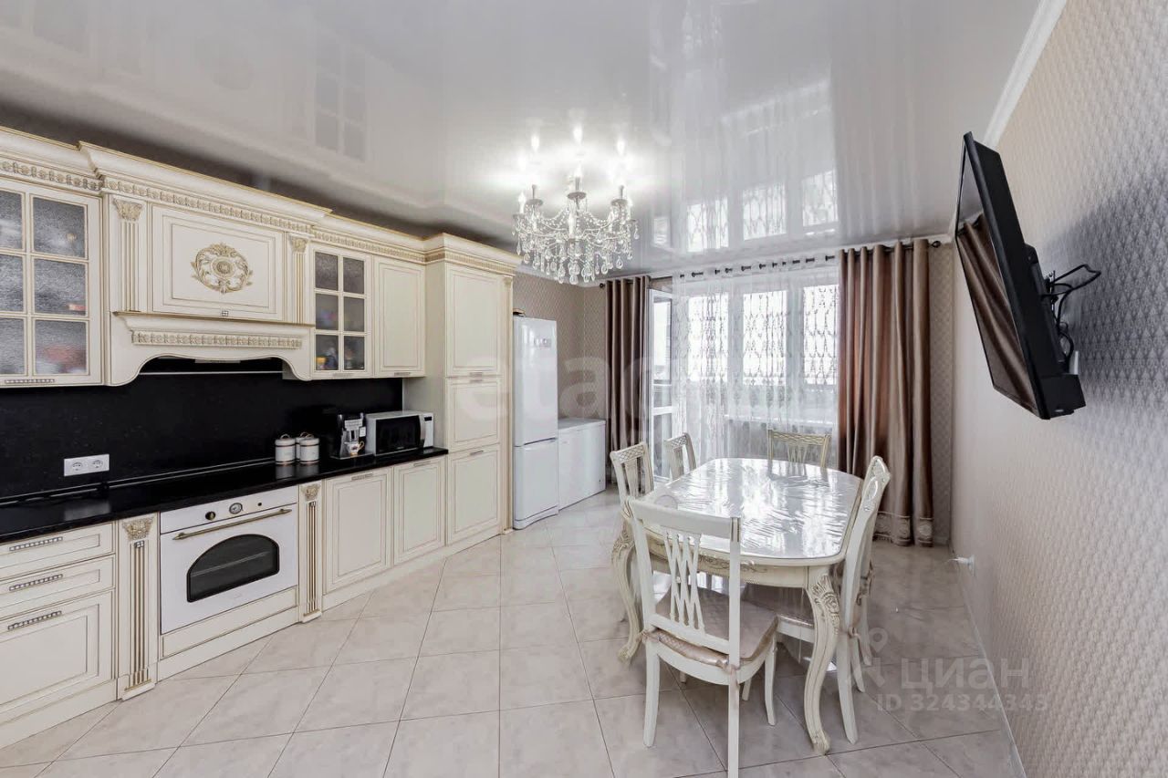Предлагается к продаже шикарная квартира с современным ремонтом формата 3+ в ЖК "Кристалл". Хорошая планировка с просторной кухней-гостиной площадью 23 кв.м. плюс три комнаты, сан.узл раздельный, два балкона. Подобных планировок в этом жилом комплексе не так много.
