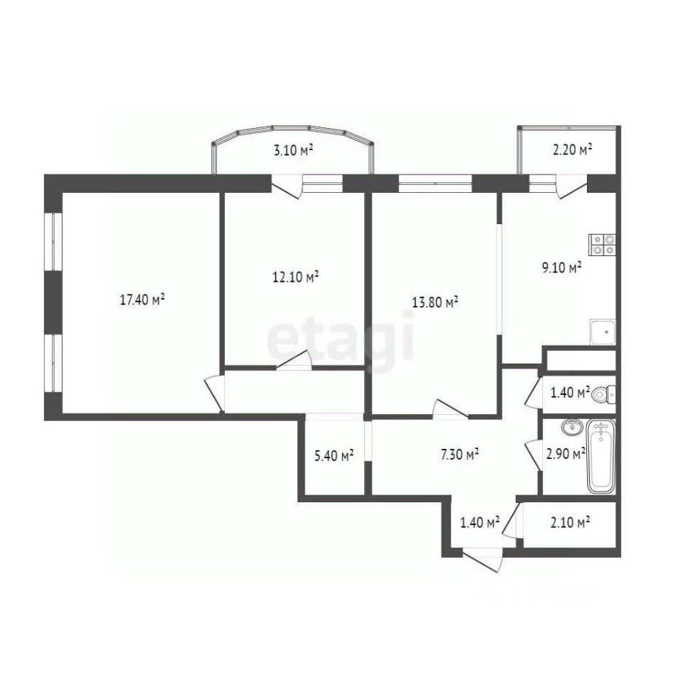 72.9 м2 на 13 этаже.