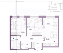 Функциональная планировка: кухня -гостиная и две спальные комнаты, просторная прихожая, два санузла.