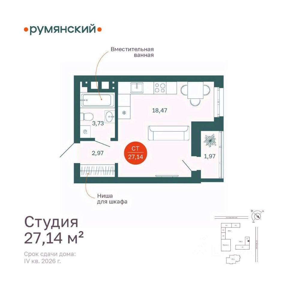 Общая площадь27,14 м²