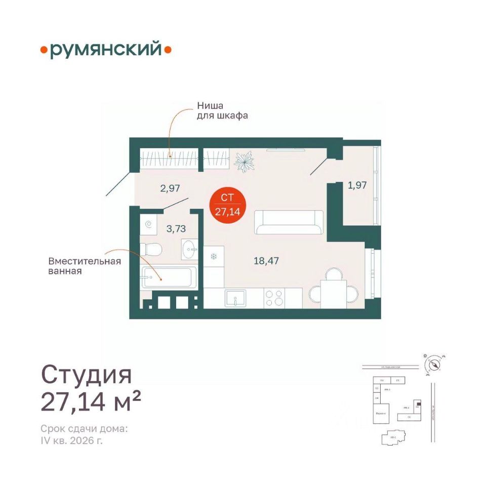 Общая площадь27,14 м²