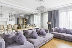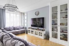 Шикарная гостевая зона включает в себя презентабельную кухню-столовую , элегантную мебель , ТВ зону , теплую и светлую лоджию.