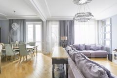 Ремонт в квартире тщательно разработан и скрупулезно выполнен по индивидуальному дизайн проекту. Качество ремонта и красота интерьера безупречны.