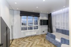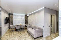 В квартире выполнен авторский дизайнерский ремонт с использованием премиальных материалов. Мебель изготовлена на заказ и оснащена фурнитурой BLUM, обеспечивающей долговечность и комфорт в использовании. Кухня, гардеробная и постирочная продуманы до мелочей, чтобы каждое пространство было функциональным.