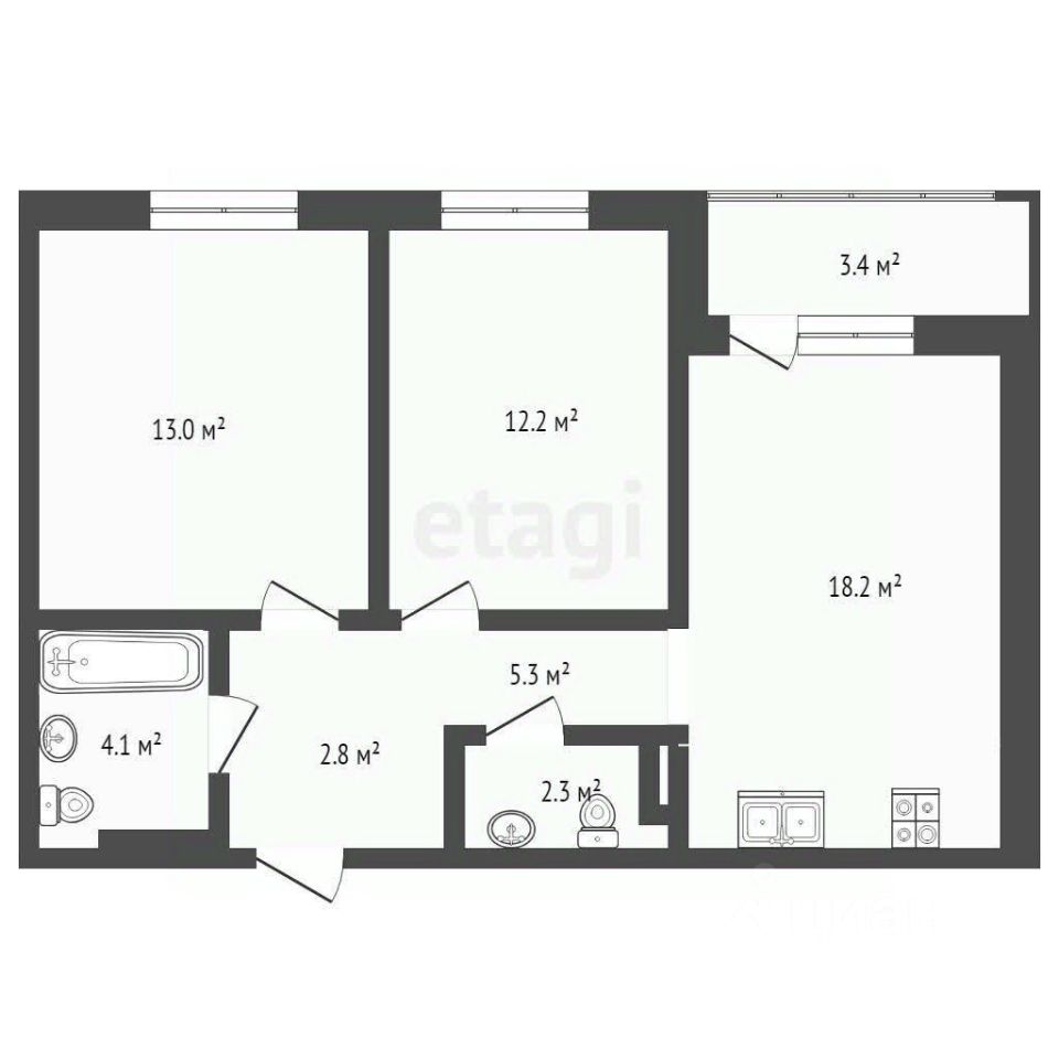 - современная планировка 2+