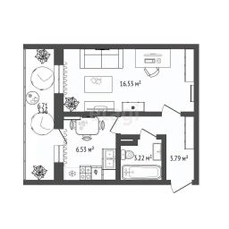 Объект отличается продуманной планировкой: жилая комната площадью 16,5 м², кухня 6,5 м², просторная прихожая и совмещенный санузел. Особого внимания заслуживает панорамная лоджия 6,6 м² с тёплым полом — который станет идеальным местом для отдыха и наслаждения завораживающих видов на город. Состояние объекта позволяет заселяться сразу после покупки.