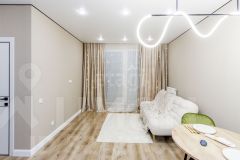 * Чистота линий: Во всей квартире установлены скрытые карнизы. Шторы ложатся идеальными складками, а интерьер выглядит по-настоящему дизайнерским — безупречно аккуратным и современным.