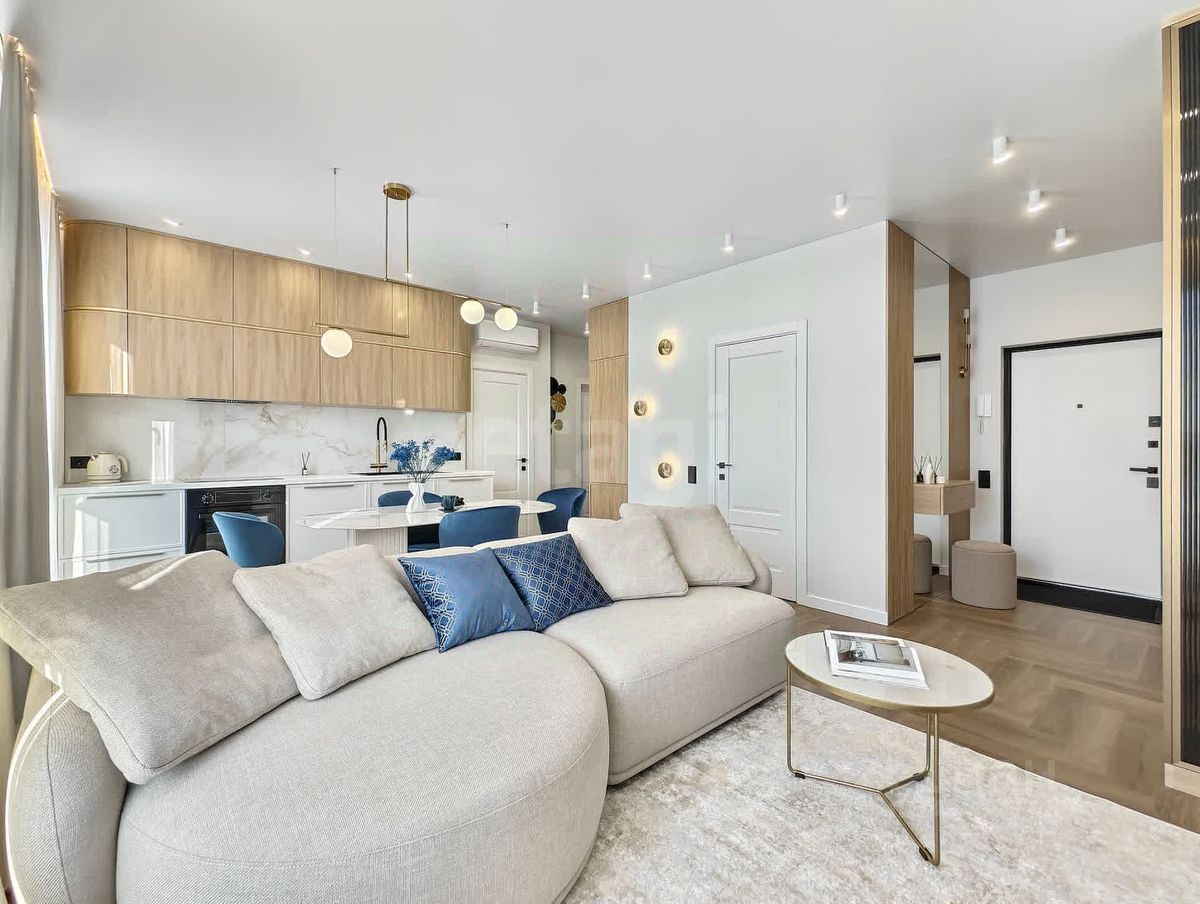 Уважаемые покупатели! Продаётся стильная квартира формата 2+ в ЖК "Сити Лайф" (ул. Профсоюзная, д. 61) площадью 75,5 кв.м - квартира со светом, видом и выразительным интерьером!