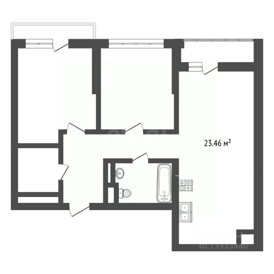 - Гостиная: просторная комната площадью 23,46 кв.м, идеально подходит для семейных вечеров и приема гостей