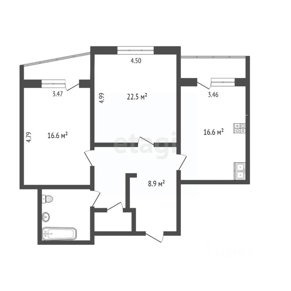 16,6 м²
