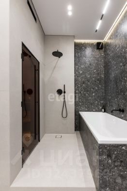 Сауна в ванной комнате с гималайской солью, пано и полки из слэба африканского дуба Абаш и баня внутри обшита липой. Кондиционеры по всей площади квартры.