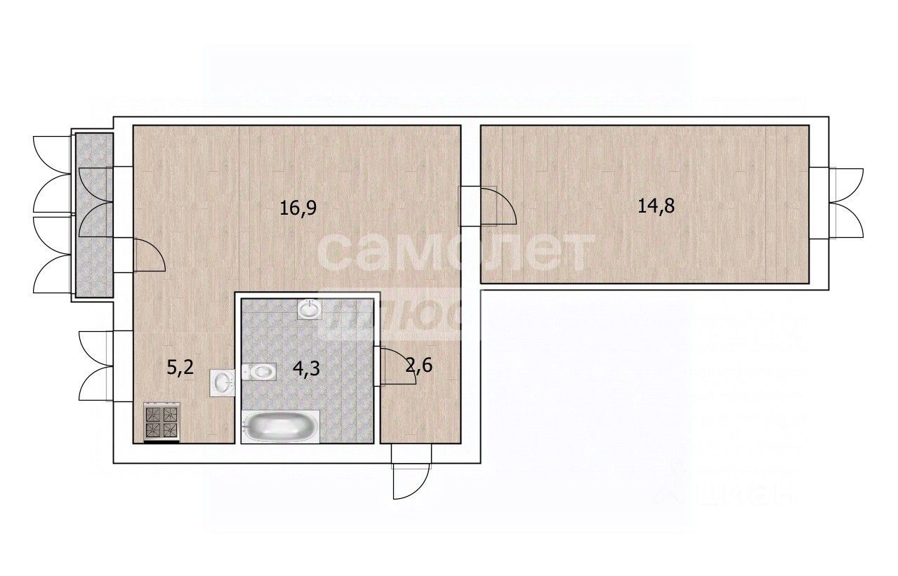 Функциональная планировка распашонка, окна выходят на две стороны дома. Это делает квартиру светлой и уютной. Сделана узаконенная перепланировка : кухня-гостиная и отдельная комната. Санузел совмещенный и просторный. Выполнен косметический ремонт в светлых оттенках .Балкон застеклен.