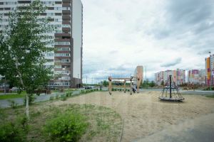 Во дворе дома есть зоны для отдыха, подходящие для всех возрастов. Это делает жильё комфортным для семей с детьми.