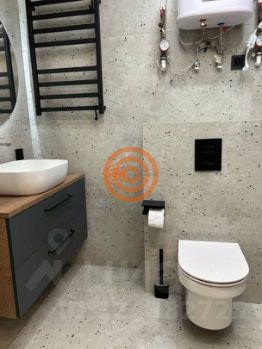 Санузел совмещенный, установлен тропический душ, зеркало с подсветкой и подогревом, теплый пол, водонагреватель.