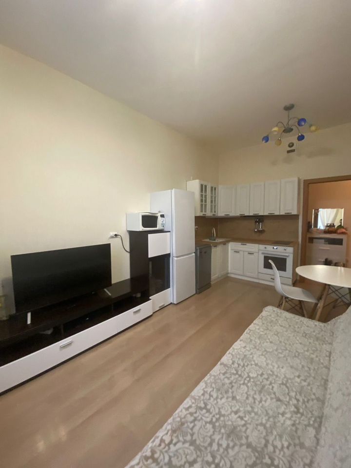 Продается уютная однокомнатная квартира в современном кирпичном доме, построенном в 2017 году. Общая площадь квартиры составляет 34,4 кв. м, с кухней 10 кв. м и потолками высотой 3 метра. Квартира находится на 6 этаже 22-этажного дома.