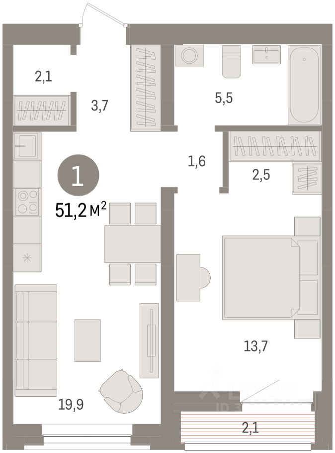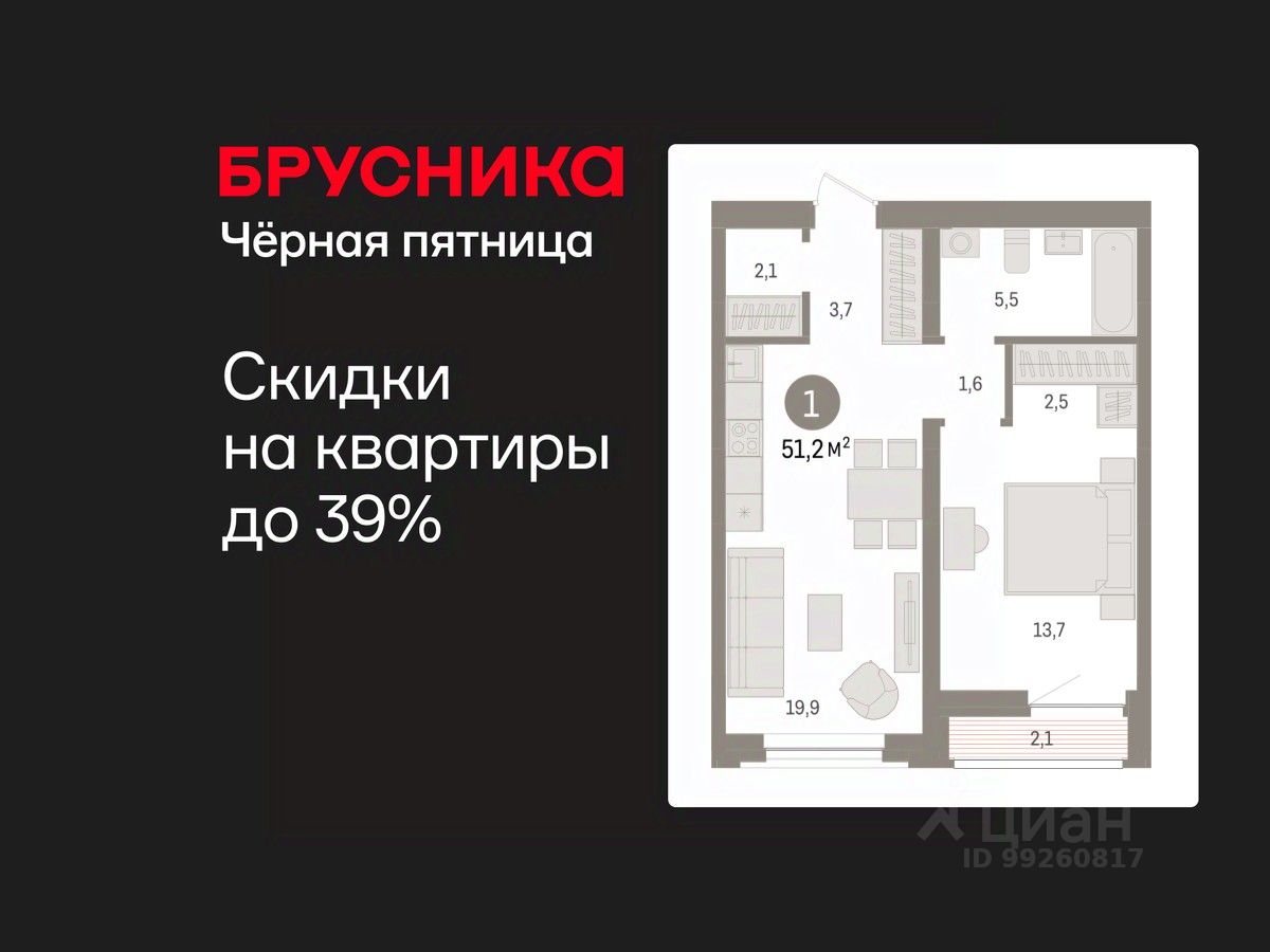 Квартира с кухней-гостиной и одной спальней в жилом районе "Речной порт". Особенности планировки: гардеробная, лоджия, предчистовая отделка.