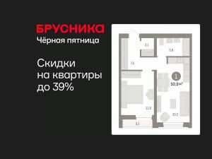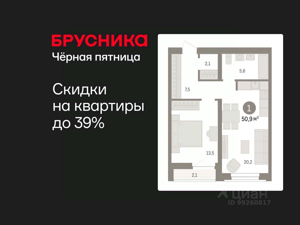 Квартира с кухней-гостиной и одной спальней в жилом районе "Речной порт". Особенности планировки: гардеробная, лоджия, предчистовая отделка.