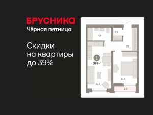 Квартира с кухней-гостиной и одной спальней в жилом районе "Речной порт". Особенности планировки: гардеробная, лоджия, предчистовая отделка.