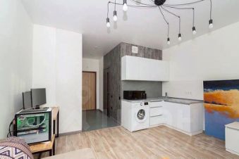 При продаже студии остаются кухня, гардеробный шкаф, пенал в ванной комнате. Остальная мебель и техника могут быть включены в сделку по договоренности.