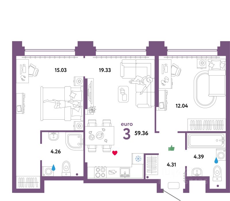 Застройщиком спроектированы квартиры с различными планировками - от студий до четырехкомнатных общей площадью от 28,07 до 131,51 кв. м. Отделочные работы не осуществляются.