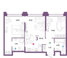 Продаётся 3-комнатная квартира в сданном доме (Тимофея Чаркова, 93 (ГП-9 Юпитер)), срок сдачи: III-кв. 2025, общей площадью 59.36 кв.м., на 31 этаже. Проект микрорайона "Звездный городок" представляет собой застройку, состоящую из кирпичных зданий переменной этажности.