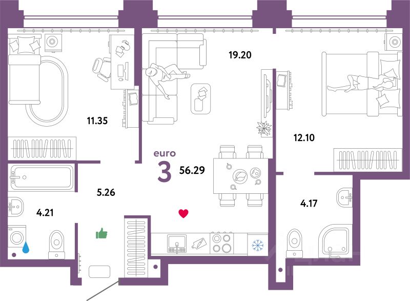 Продаётся 3-комнатная квартира в сданном доме (Тимофея Чаркова, 93 (ГП-9 Юпитер)), срок сдачи: III-кв. 2025, общей площадью 56.29 кв.м., на 30 этаже. Проект микрорайона "Звездный городок" представляет собой застройку, состоящую из кирпичных зданий переменной этажности.