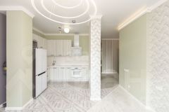 Включает в себя-комфортный коридор со встроенным шкафом до потолка, по правую руку мастер спальня со своим санузлом и выходом на панорамный балкон. По левую руку мини сердце дома,где разводка обогрева полов и тд,связанное с управлением дома. Кухня -гостиная впечатляет своими размерами:11,88м2 зона кухни и кухонного гарнитура,а в продолжении 13,64м2-зона обеда и встречи всей семьи. +вокруг огромного окна уствновлены до потлка места для хоанения важных вещей. В квартире еще один просторный санузел и две раздельные комнаты для еще 2-х членов семьи! Очень много света и простора!