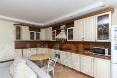 В кухне-гостиной 5-метровое панорамное окно с прекрасным видом на город, кондиционер. Итальянский кухонный гарнитур со встроенной бытовой техникой,в т.ч. посудомоечной машиной.