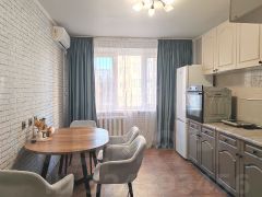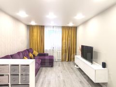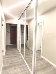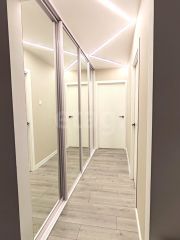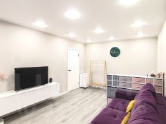 Потолок в кухне выровнен и окрашен, в коридоре и комнатах натяжной с современным стильным освещением. Квартира очень светлая и комфортная для глаз, по вечерам в окна заглядывают красивейшие закаты!