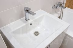 Санузел оборудован по последнему слову техники: инсталяция, умывальная тумба и ванна, а также стильная керамическая плитка создают комфорт и удобство. Вам остается лишь привнести свою мебель и создать пространство, отражающее ваш уникальный стиль.