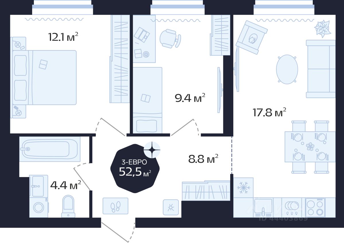 Общая площадь52,5 м²