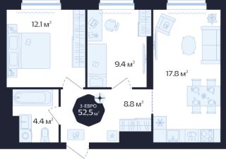 2-комнатная 52,5 м²