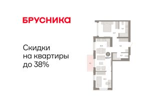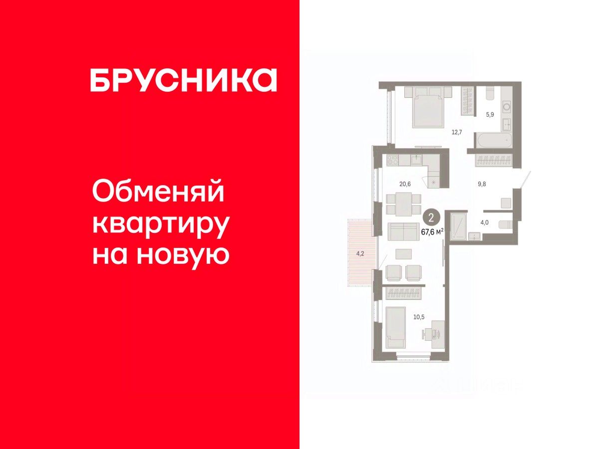 Квартира с кухней-гостиной и двумя спальнями в Октябрьском на Туре. Особенности планировки: балкон, предчистовая отделка.
