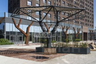 Квартал бизнес-класса, в котором видно сочетание высотности, строгих форм, стекла, кирпича, металла и натуральных материалов, мотивов ветвей дерева, многоуровневого ландшафтного дизайна.