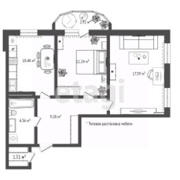 2-комн.квартира общей площадью с балконом 53,1м2, с качественным ремонтом, который будет служить долгие годы и будет актуальным и через 5-7 лет. 2 раздельные комнаты, просторная кухня с удобным и качественным гарнитуром, все выполнено в приятных спокойных оттенках. Все комнаты правильно формы, просторный санузел. В прихожей: вместительный шкаф-купе, в комнатах ламинат, большая ванная комната полностью в плитке, в светлых оттенках. В гостиной установлен кондиционер, в спальне есть выход на балкон. При продаже большая часть мебели останется в квартире, что позволит вам сразу заехать и жить!