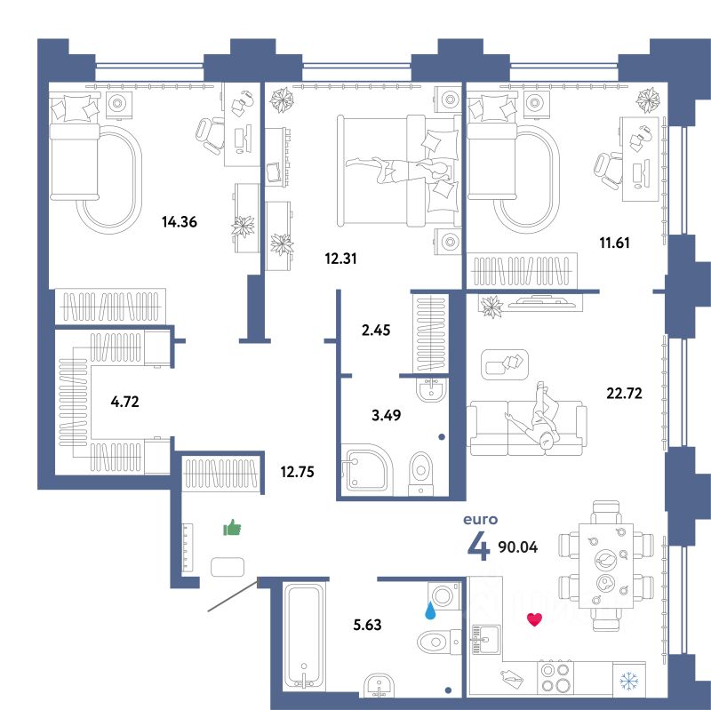 Застройщиком спроектированы квартиры с различными планировками - от студий до четырехкомнатных общей площадью от 28,07 до 131,51 кв. м. Отделочные работы не осуществляются.
