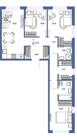 Продаётся 4-комнатная квартира в строящемся доме (Квартал Инженеров (ГП-7)), срок сдачи: IV-кв. 2027, общей площадью 81.17 кв.м., на 2 этаже. Новый жилой комплекс "Сердце Сибири" расположился в центре Тюмени в границах улиц 50 лет Октября-Пермякова-Харьковская.