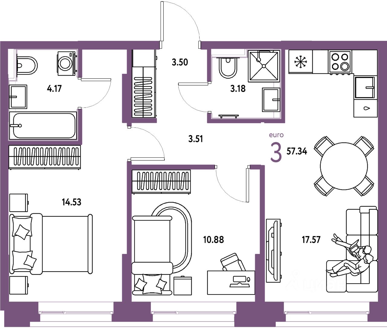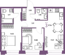 Продаётся 3-комнатная квартира в строящемся доме (Квартал Инженеров (ГП-7)), срок сдачи: IV-кв. 2027, общей площадью 57.34 кв.м., на 4 этаже. Новый жилой комплекс "Сердце Сибири" расположился в центре Тюмени в границах улиц 50 лет Октября-Пермякова-Харьковская.